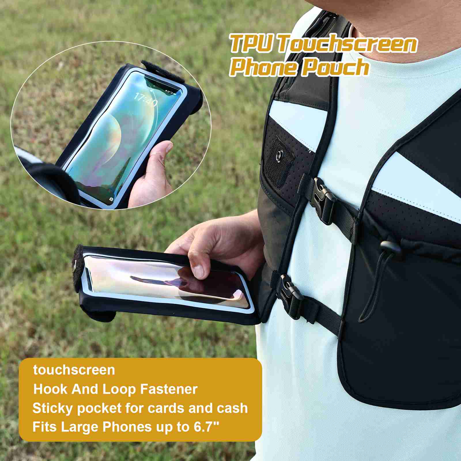 Fumbling with your phone? Secure phone pouch with touchscreen - TPU window allows full phone functionality up to 6.7 inches